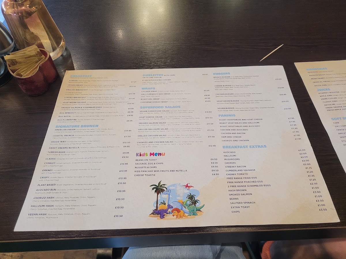 The menu at Toast And Tomato offers a delightful variety of dishes that cater to diverse tastes, from hearty breakfasts to light and refreshing salads. For breakfast, diners can enjoy classics like the English Breakfast and the Vegan Dream, or indulge in more loaded options like the Loaded Breakfast or Vegetarian Delight. The American Dream and Coastal Brunch stand out on the Signature Brunch section, alongside the sweet option of Sweet Dreams Nutella. For a Mediterranean twist, Turkish Eggs make a flavorful choice. Wrap lovers will find options like the Chicken Wrap and Halloumi & Avocado Wrap, while the Chicken & Chorizo Wrap adds a bit of spice. There’s also a selection of vibrant Superfood Salads, including the Vegan Super Food Salad and Goat Cheese Salad, alongside the Smoked Salmon Salad and Grilled Chicken Salad. For the little ones, the Beans on Toast and Kids Pancake with Fruits and Nutella offer a delicious and simple meal. In the burger section, Brunch Burger, Cheese Burger, and Vegan Burger provide something for everyone, with additional toppings like Avocado, Chorizo, and Streaky Bacon to customize your dish. For extra indulgence, diners can also opt for roasted vegetables with options like Goat Cheese, Halloumi, or Avocado, and even the savory Chicken and Bacon combination. This diverse and flavorful menu ensures that there's something satisfying for every palate at Toast And Tomato.
